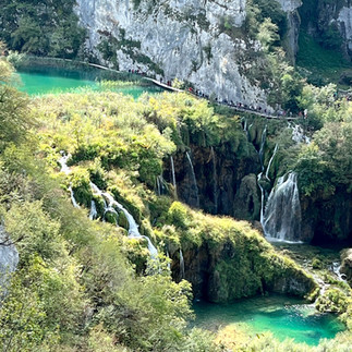Once at the hotel, we dropped off our bags and jumped back in the van for a ride to the Plitvice Lakes National Park, a UNESCO World Heritage site. Plitvice Lakes are a system of 16 interconnected lakes. The lakes are split between the upper and lower lakes and contain over 90 waterfalls.